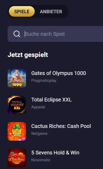 Es öffnet sich ein Fenster, in dem die Hersteller namentlich aufgelistet sind. Nun können Sie in der Suchzeile nach Anbietern oder nach Roll XO Casino Online Games suchen. Klicken Sie einen bestimmten Provider an, werden ausschließlich Spiele von diesem angezeigt. Falls Sie bereits einen bevorzugten Hersteller haben, finden Sie die Inhalte somit noch schneller.